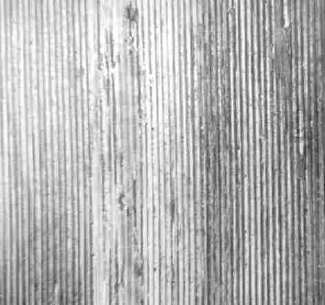 Vorschubrilligkeit der Schneide lediglich einebnen, ist nicht richtig. Das folgende Bild zeigt, dass das Material mit den Vorschubrillen, die die Schneide gebildet hat, durch die Führungsleisten