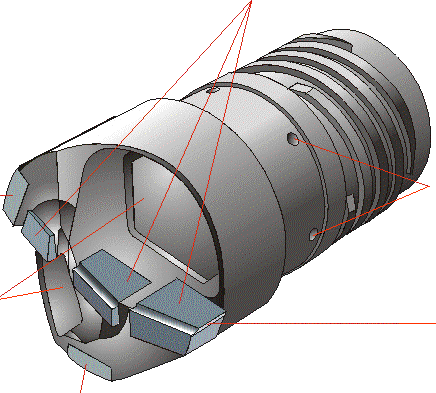 Ringraum zwischen dem Bohrrohr und einem Innenrohr (Zweirohrverfahren). Der Kühlschmierstoff tritt am Bohrkopf seitlich aus, umspült diesen und fließt mit den Spänen im Innenrohr zurück. Ein Teil des Kühlschmierstoffs wird über eine Ringdüse in das Innenrohr eingeleitet. Durch den entstehenden Unterdruck am Spanmaul wird der Rückfluss ermöglicht (Ejektor-Effekt). Die nachfolgenden Bilder zeigen die wesentlichen Merkmale dieses Verfahrens. Im Gegensatz zum BTA-Verfahren entfällt die Abdichtung gegen Austreten von KSS.