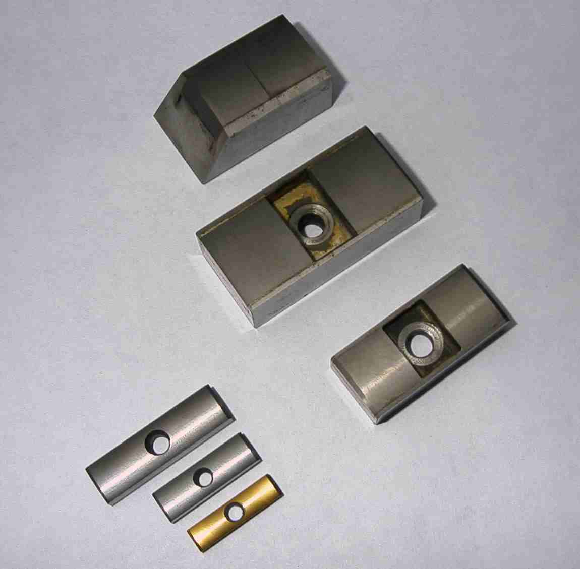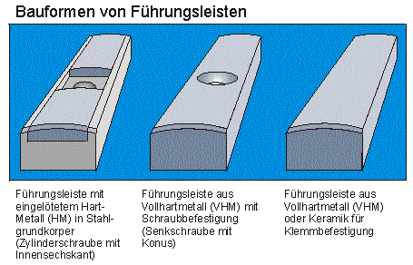 links unten: Vollhartmetalleisten (z.T.  beschichtet mit TIN)