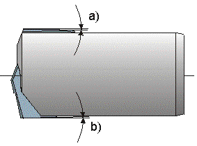 a) Leistenhinterschliff b) Rundschlifffasenhinterschliff, ist der Freiwinkel der Nebenschneide.