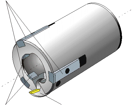 Bohrkernes. Die radiale Zustellung des Messers erfolgt durch den Bohrvorschub. Das Werkzeug wird in dem Ringspalt bis zum Bohrungsgrund vorgefahren. Das aussen rund ausgeführte