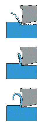 In Abhängigkeit der Bedingungen beim Zerspanvorgang findet die Spanbildung nach drei unterschiedlichen Mechanismen statt.