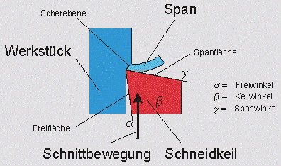 Durch das Eindringen der Schneide in das Werkstückmaterial (Umfomvorgang) wird das Werkstückmaterial derart beansprucht, dass der Gefügeverband aufgehoben wird. Dies geschieht u.a. unter Wärmeerzeugung.